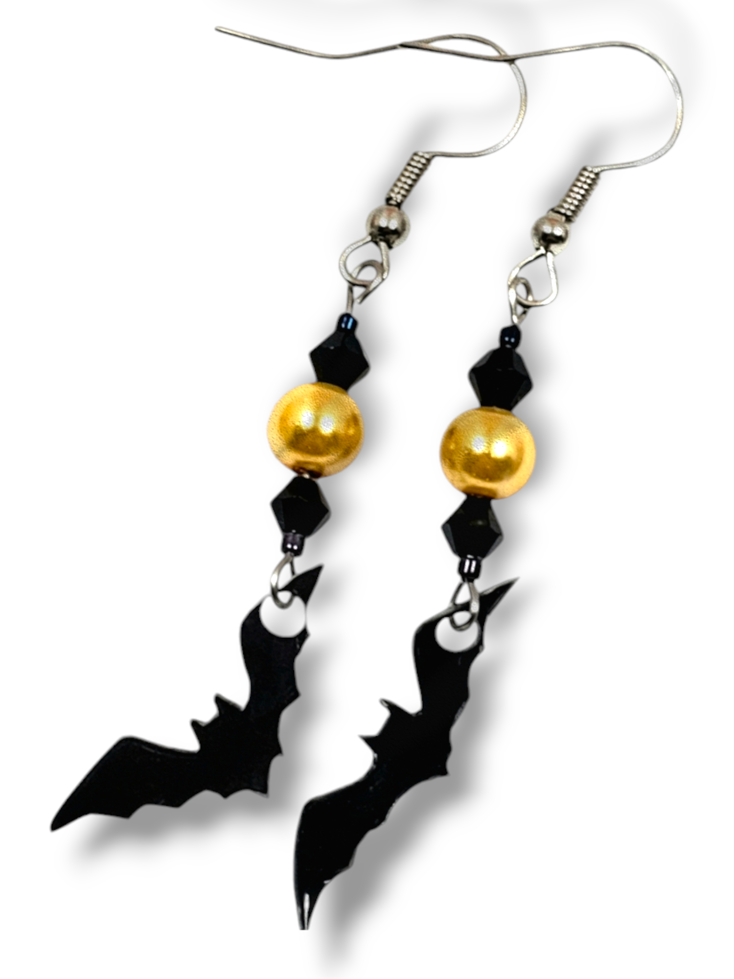 Unleash your inner spooky with these Bat Dangle Earrings! Perfect for Halloween, these black bats will add a touch of mystery and fun to any outfit. Make a statement and show off your love for all things spooky with these must-have earrings.