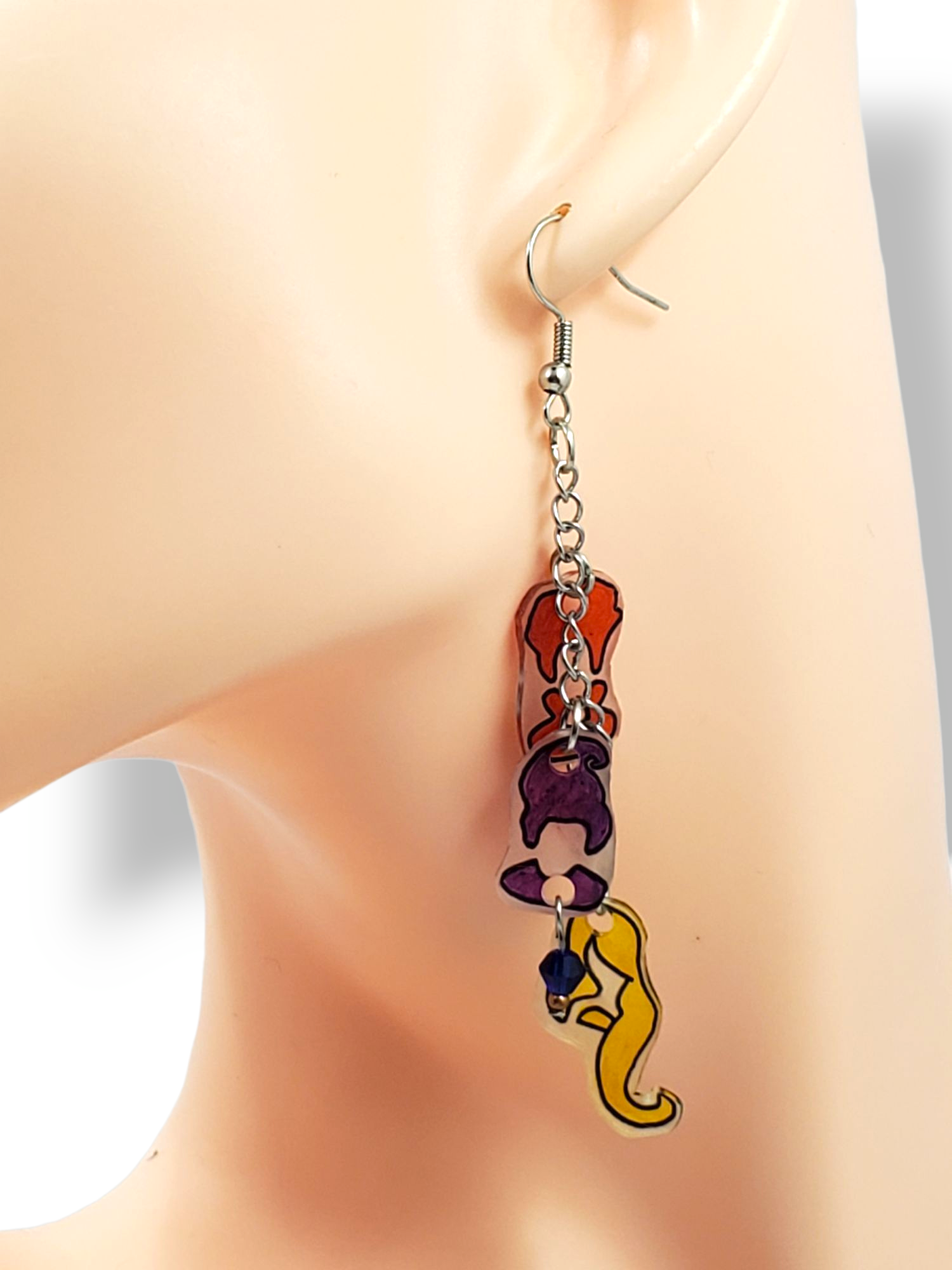 Unleash your inner witch with our Hocus Pocus inspired dangle earrings! These bewitching accessories are the perfect addition to your Halloween ensemble or any other spooktacular event. Channel the magic and charm of the famous movie with these must-have earrings.
